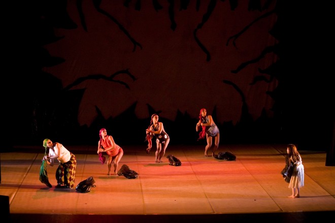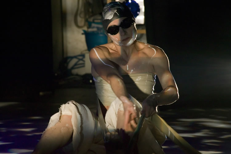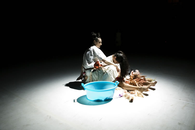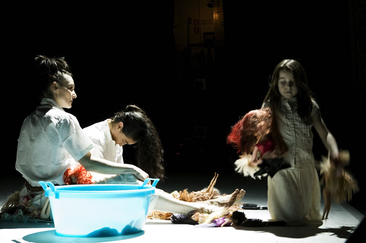 Note di Francesca La Cava. “Difficile raccontare l’Africa… Durante i miei soggiorni in questo meraviglioso continente sono rimasta colpita dall’eleganza intrisa di rassegnazione delle donne, dai rituali religiosi di matrice animista che gli africani conservano nonostante la forte presenza delle religioni dei colonizzatori e dalla violenta presenza degli oggetti di consumo della nostra cultura occidentale. Ho guardato l’Africa con gli occhi di una bambina occidentale, immaginando la sua reazione davanti a un mondo tanto diverso dal suo e ho fatto un viaggio onirico che mi ha consentito di raccontare i rituali religiosi (il feticcio, la violenza e il vodoun), le donne e gli influssi dell’Occidente in questa terra. Ma noi non siamo africani…Il nostro viaggio è occidentale e risente della nostra cultura: durante lo spettacolo utilizziamo oggetti abituali del nostro mondo enfatizzandone la presenza sulla scena. La creazione è suddivisa in tre sezioni: abbiamo interpretato il feticcio usando un nostro oggetto di forte impatto consumista; parliamo, con un taglio inizialmente ironico, dello sfruttamento e della violenza sulle donne mescolando la cultura africana alla nostra; esaltiamo la bellezza delle donne africane, sempre utilizzando entrambe le culture, per parlare di un rito vodoun: quello di Mamy Wata, divinità del mare e dei fiumi, femminile e civettuola. Ed infine la bambina conclude il suo viaggio…”